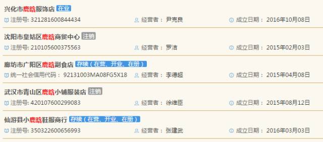 根据全国企业信息网资料,目前全国已有10多家企业名称中包含“鹿晗”,经营范围覆盖到影视演出,化妆品,服装饰品,日用百货,家居用品,食品、饮料、酒、烟、日用百货零售,投资咨询,技术服务,室内外装饰装潢工程,蔬菜种植等领域。其中,2013年9月2日成立的鹿晗贸易(上海)有限公司是诸多企业中最早成立的,而鹿晗投资的南京鹿晗影视文化工作室则成立于2014年10月30日,稍晚于前者成立。